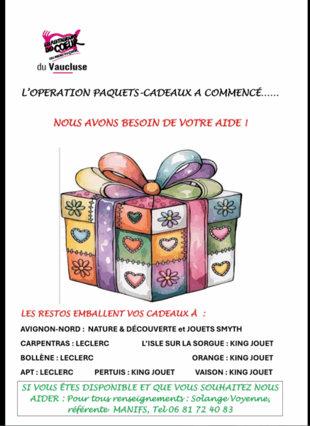 En cette période hivernale et à quelques semaines des fêtes de fin d’année, de nombreuses opérations paquets cadeaux se mettent en place partout en France pour venir en aide aux Restos du Cœur qui ont lancé leur 41e campagne.